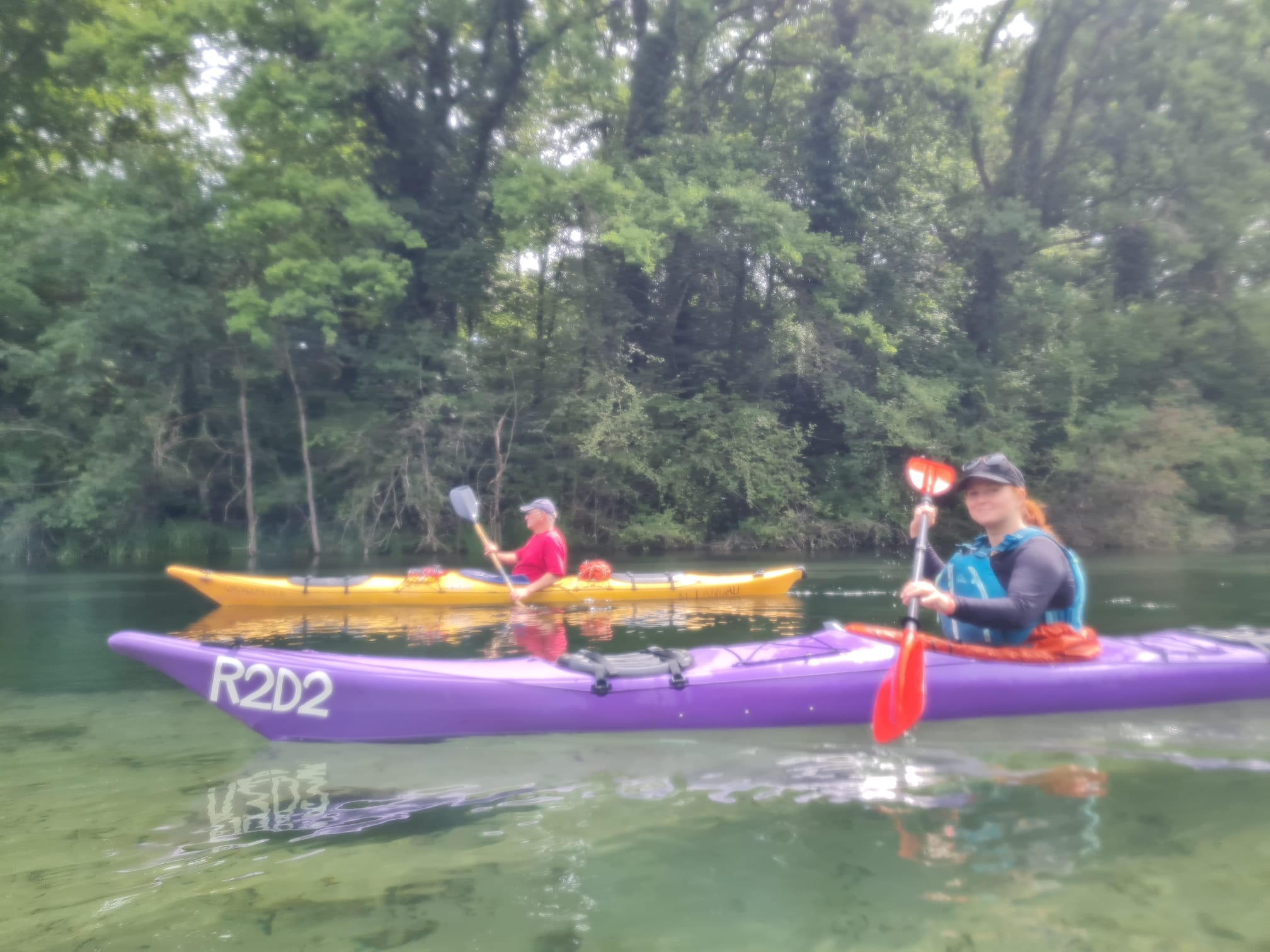 Kurz darauf machten wir an einem Holzsteg Rast. Es gab mitgebrachte Leckereien, geteilte Getränke und sogar ein erfrischendes Bad. Nach etwa 45 Minuten Pause ging es gut gestärkt weiter und die Natur blieb traumhaft schön. An einer bekannten Umtragestelle verlor eine Teilnehmerin beim Einsteigen kurz die Balance und landete halb überrascht, halb lachend im Wasser. Zum Glück blieben alle unbeschadet und mit einem herzlichen Lächeln und der Unterstützung der Gruppe ging es schnell und fröhlich weiter.