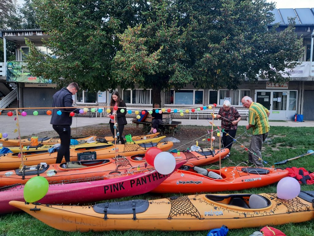 Anschließend ging es dann nach Straßbourg um die Boote mit Lichterketten, leuchtenden Luftballons, Fackeln, Laternen und allem was sonst noch leuchten kann zu schmücken. Das diesjährige Highlight war die leuchtende Quietscheentenkette hinter einem Kanadier. Aber auch die üblichen Aufbauten sind jedes Jahr wieder ein Hingucker. Da ich mir erst kurz vor der Fahrt die Frage gestellt habe: „Wo sind denn eigentlich meine Lichterketten? Die hatten wir doch an der Jubiläumsfeier noch am Vereinsgelände in den Bäumen hängen…“, war ich mir Samstag morgen noch nicht sicher, ob sich zu den Knicklichtern und Luftballons noch Lichterketten gesellen würden. Aber ein Hoch an unsere Mitpaddler!!! Mit vereinten Kräften wurden alle Boote bunt und leuchtend geschmückt.